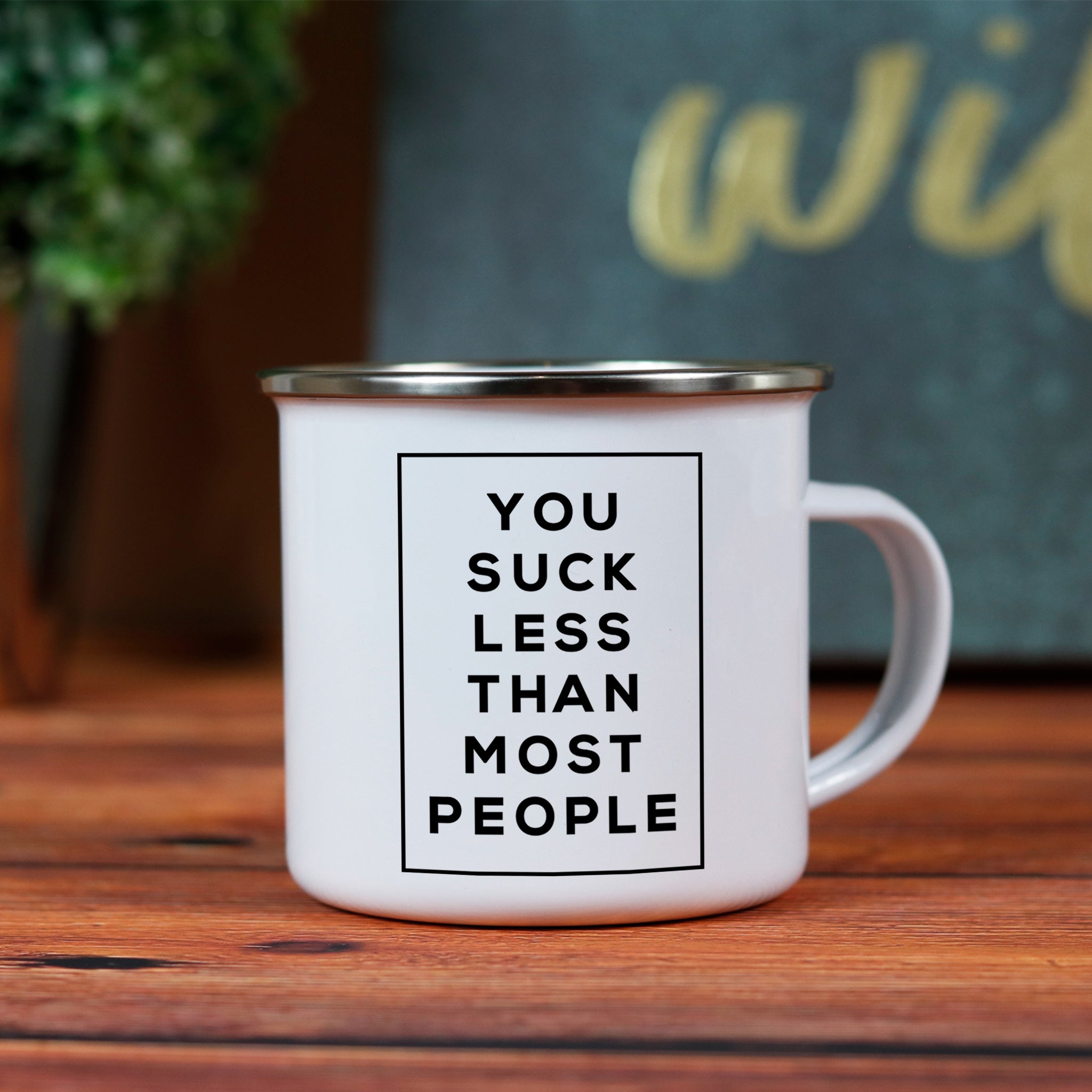 You Suck Less Enamel Camping Mug