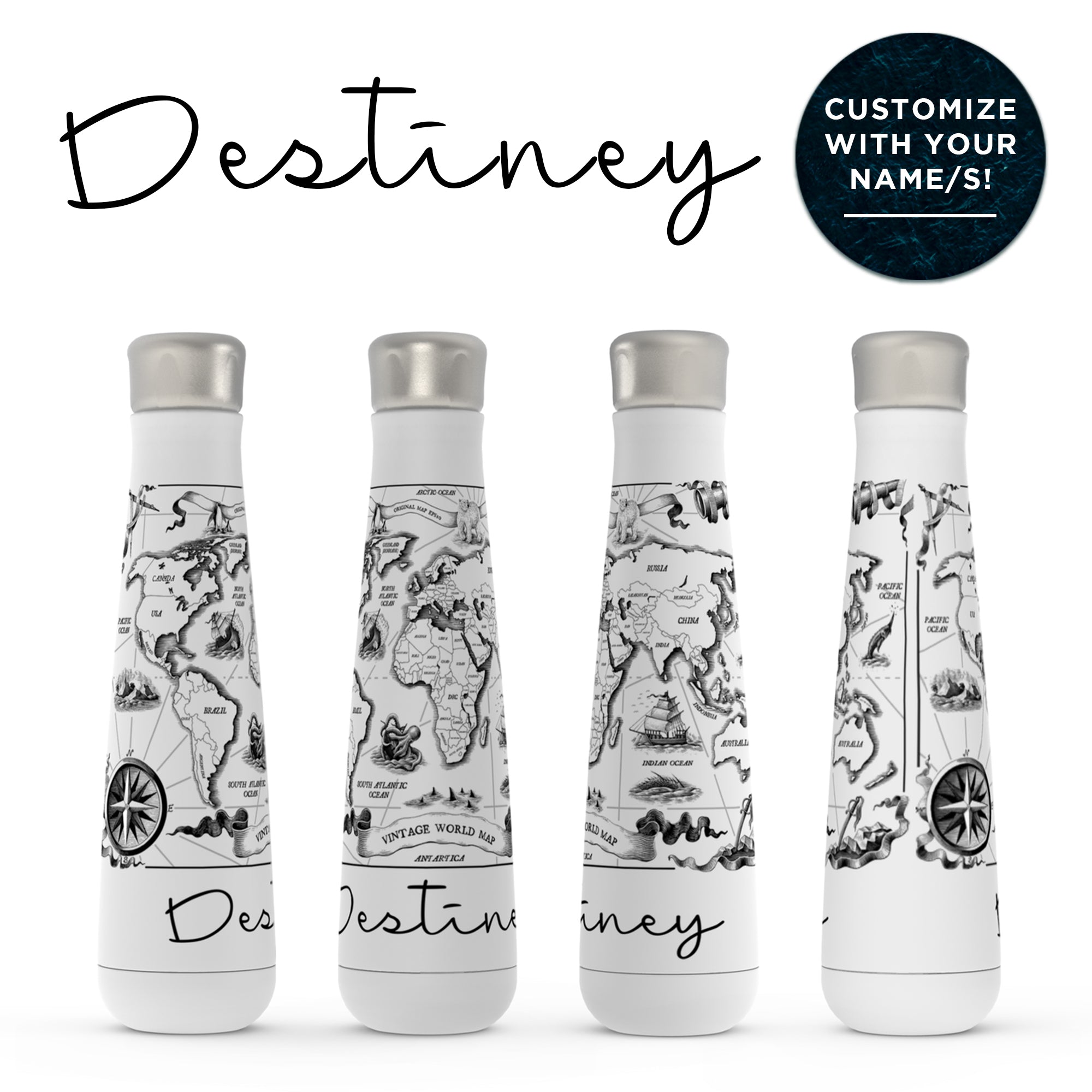 Personalized Compass Travel Map Water Bottle